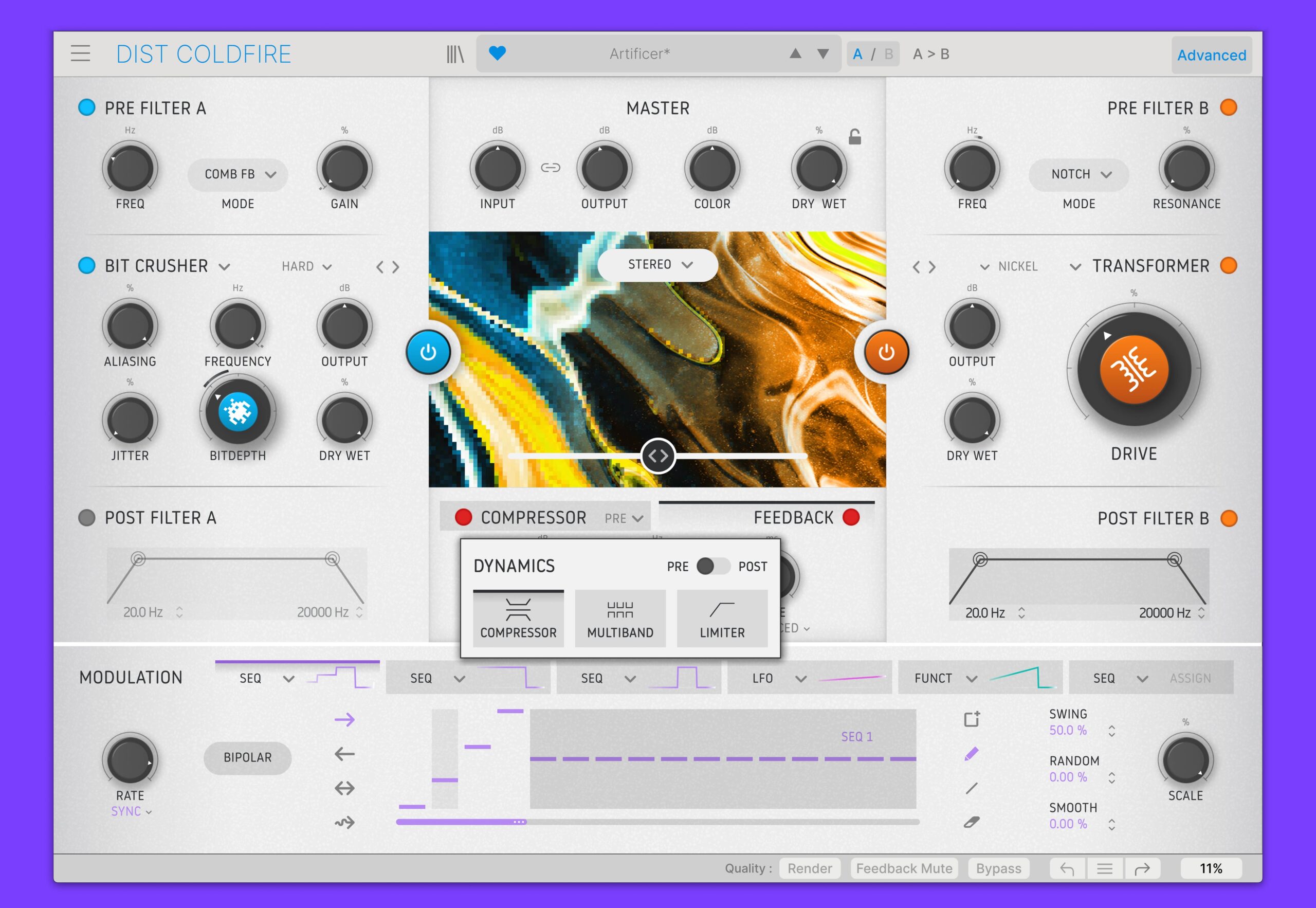Additionally, the built-in dynamics module offers tools like a limiter, compressor, and multiband compressor, enabling you to sculpt your sound with precision and control. This is ideal for keeping your distorted sound polished and balanced within your mix.