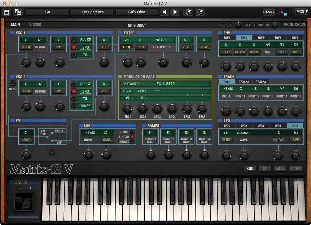 The Arturia Matrix-12 V is a meticulously crafted software recreation of the legendary Oberheim Matrix-12, one of the most powerful and expressive analog synthesizers ever made. Combining Arturia’s True Analog Emulation (TAE) technology with the original's signature filters, modulation matrix, and multi-mode capabilities, this virtual instrument offers an unparalleled level of sonic flexibility—all while being fully compatible with modern DAWs and MIDI controllers.