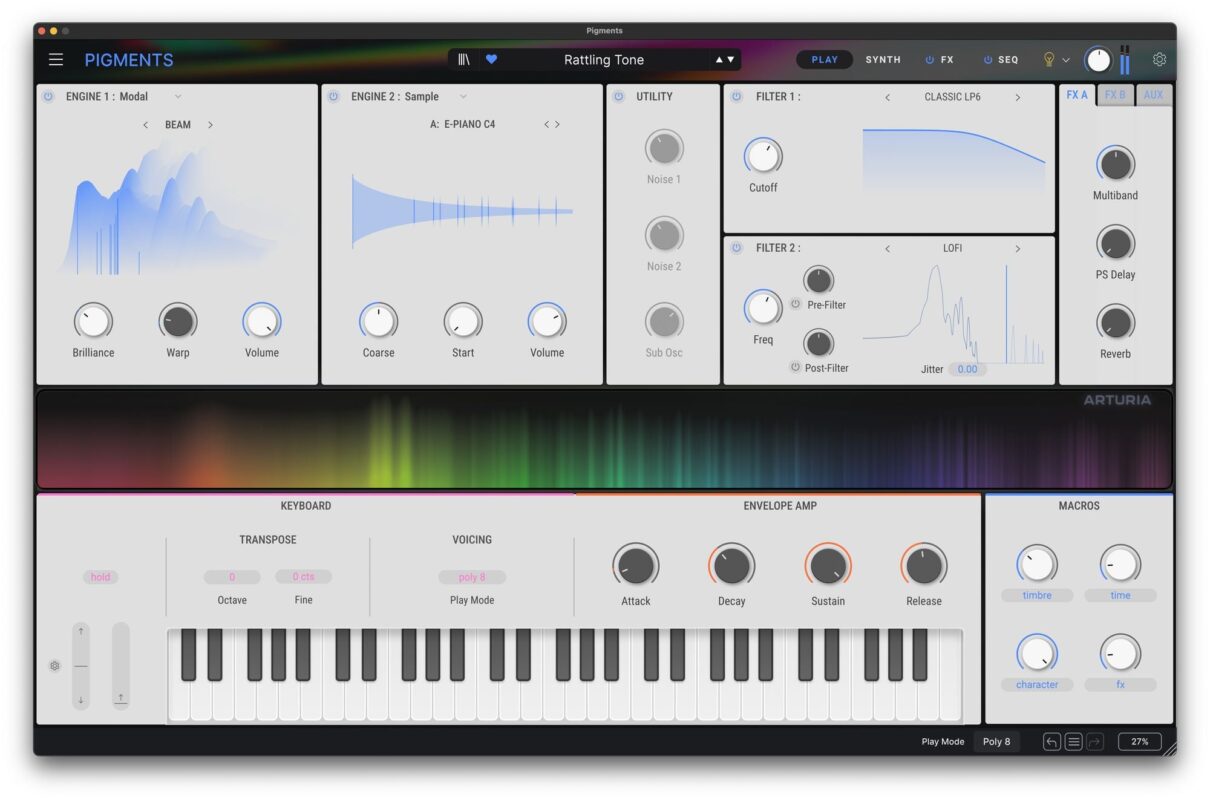 The new generation of Pigments boasts enhanced CPU efficiency, a library of over 1,500 presets, and groundbreaking tools like a generative sequencer and precise micro-tuning. Its studio-grade effects, including the legendary JUN-6 chorus and Shimmer Reverb, deliver professional-grade sound quality.