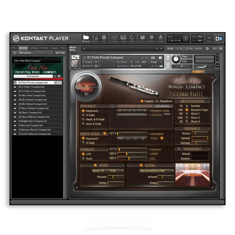 Chris Hein – Winds focuses on orchestral woodwind sounds maximum flexibility, while maintaining the ease of use.The library is arbitrarily configurable to embrace individual workflow techniques and demands of different producers. The available options and solutions take care of almost every practical application, leaving almost nothing to be desired – everything has been thought of! The extensive amount of samples is handled by Native Instruments´ powerful sample-engine, Kontakt Player. Expect a custom tailored user-interface and extensive scripting to meet the specific requirements of these instruments.