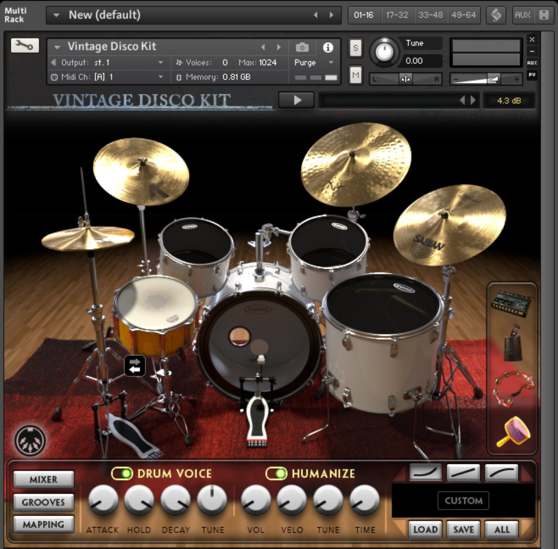 - Customizable mic mix settings to control the placement and effect of each drum.