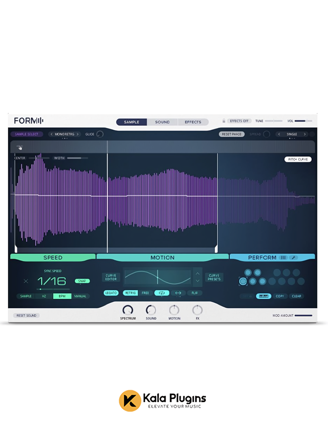 FORM is an innovative KOMPLETE Instrument that runs inside REAKTOR PLAYER or REAKTOR. Unlike conventional synthesizers that rely on oscillators, FORM uses sample-tracking technology to shape and manipulate sounds in unique ways. By loading a sample—either from your own collection or the included library—users can explore and transform its sonic potential through intuitive scrubbing, modulation, and processing tools.