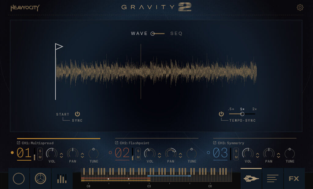 Whether you want a convenient bank-based workflow or you’d rather jump off the deep end into tweaking your sonic creations, Gravity 2 has you covered. Utilize its Menu or Menu XL engines for selecting sounds that are mappable to the entire keyboard, select their start and stop times, and then further shape them via filters, EQs, and more. Or, if you really want to get your ears dirty, try Gravity 2’s Designer engine on for size. Its three separate channels each have mix and FX controls, so you can layer sources and craft some truly unique and gnarly sounds.