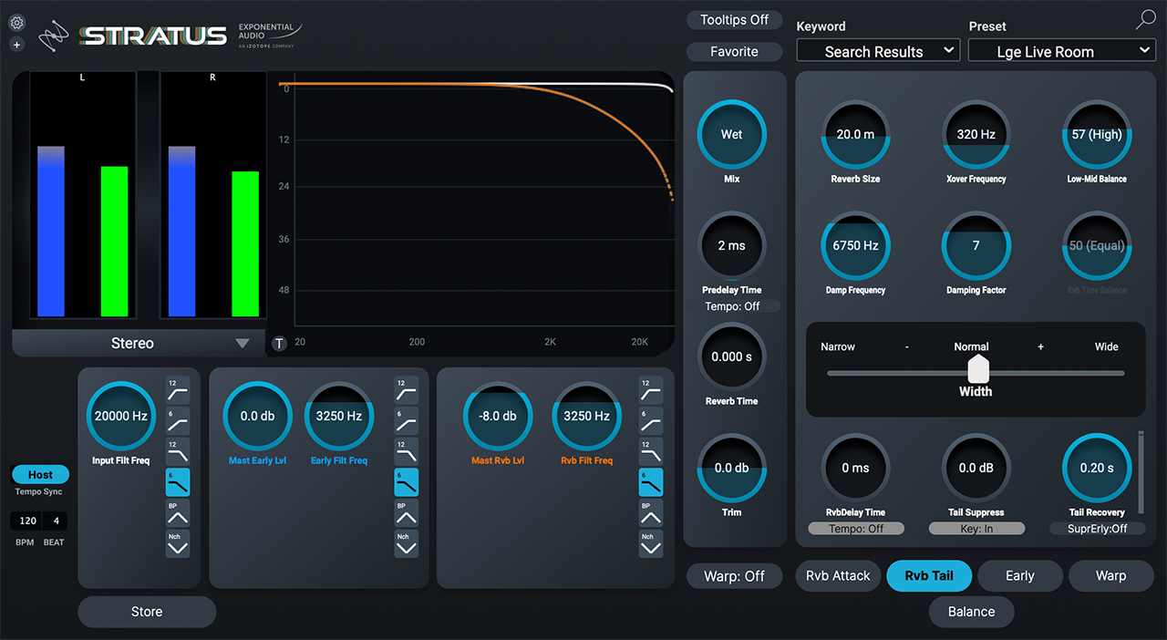 Powered by Exponential Audio’s legendary reverb algorithms, Aurora offers a sonic experience like no other. Choose from six reverb types and customize your sound with intuitive controls for pre-delay, decay time, width, tone, and more. From tight drum spaces to vast, dreamy soundscapes, Aurora adapts to any creative need.