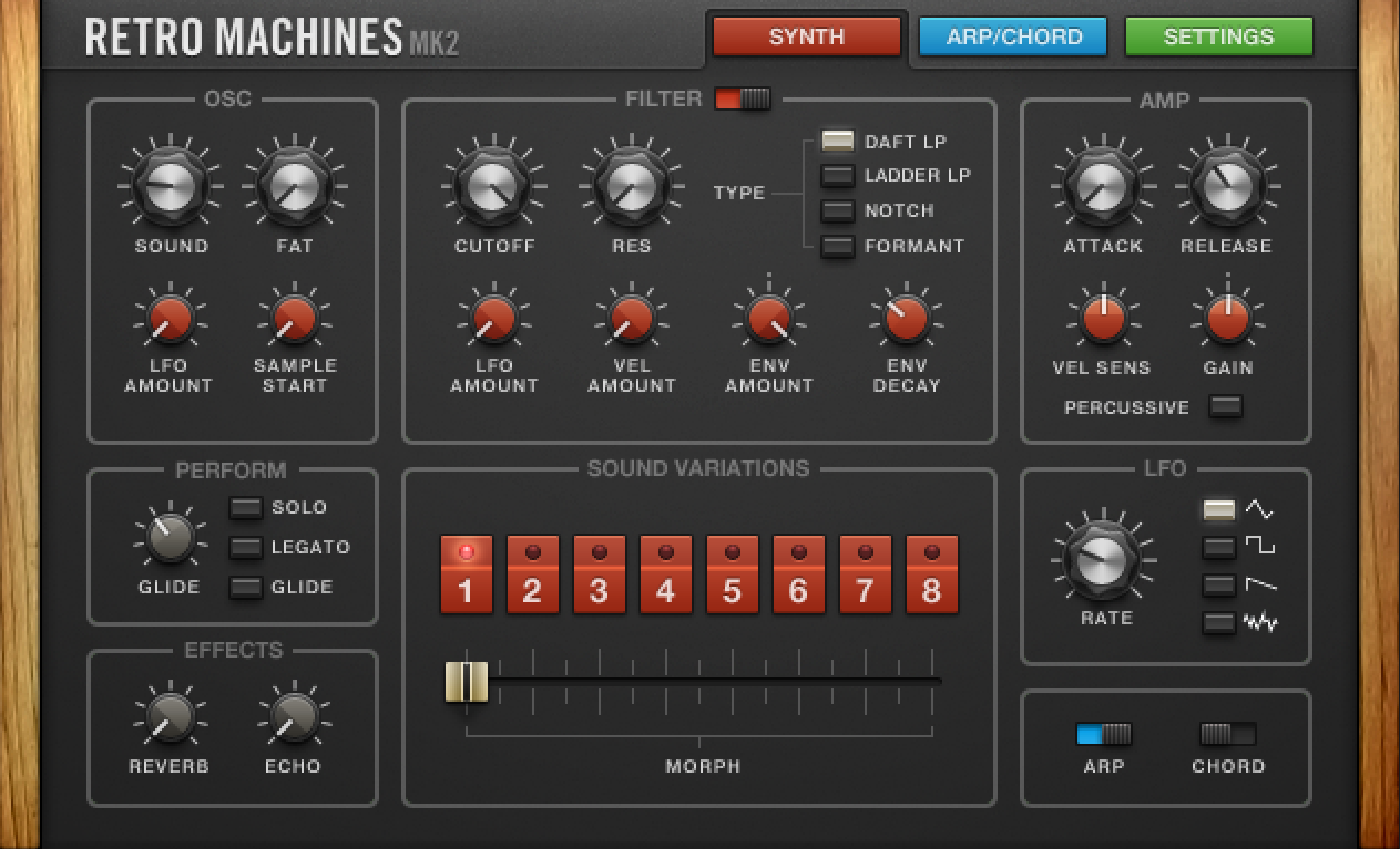 - 4 analog synth modules with extensive control, plus a dedicated sub module sampled from a vintage Oberheim synth.