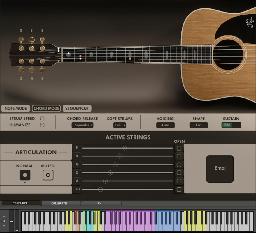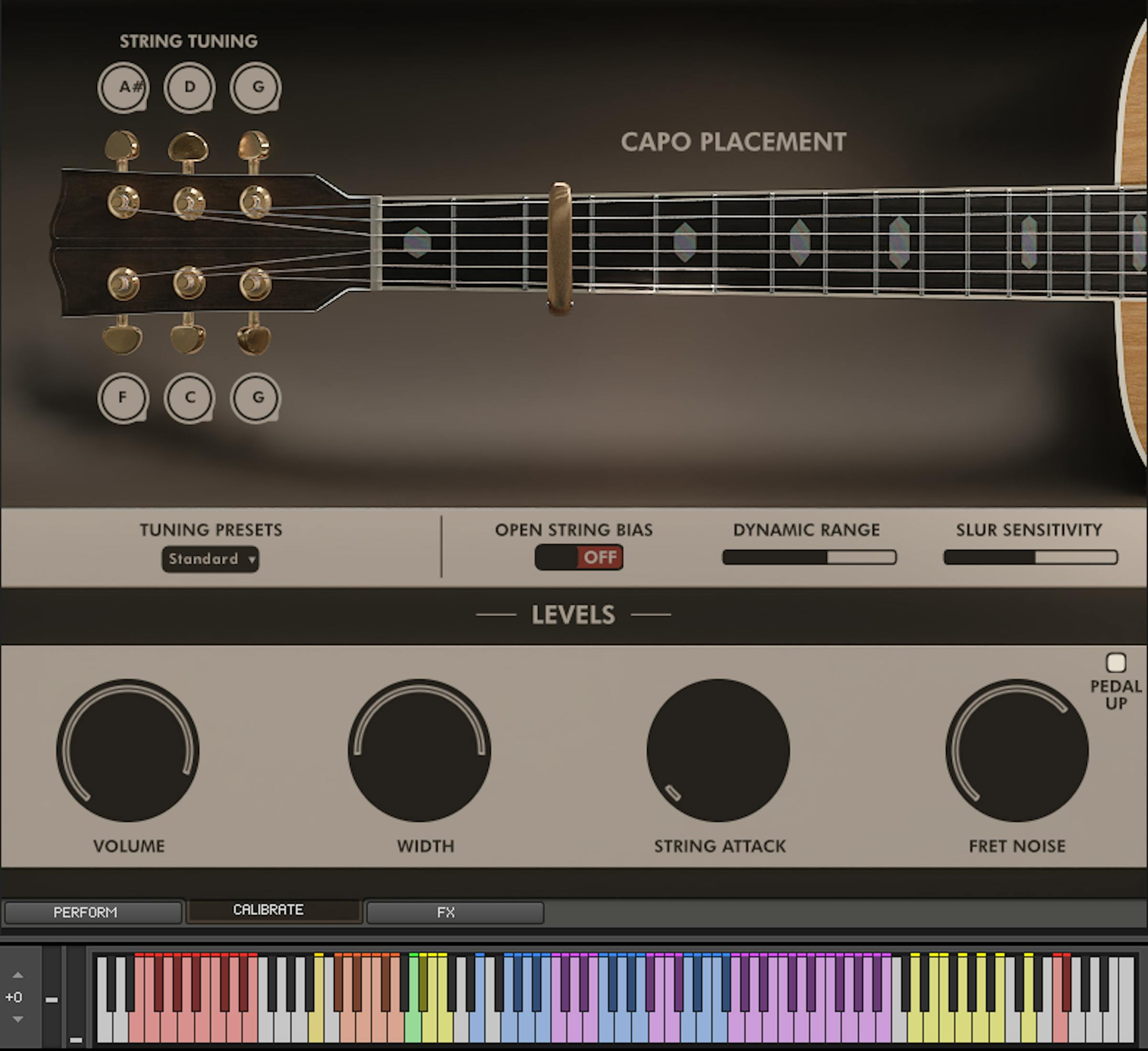 Through its original and intuitive playing method, the instrument allows users to craft authentic fingerstyle performances without the need for excessive programming. The sustain pedal system and capo/tuning system provide additional realism, making it easier to create lifelike, playable guitar parts directly within your DAW.