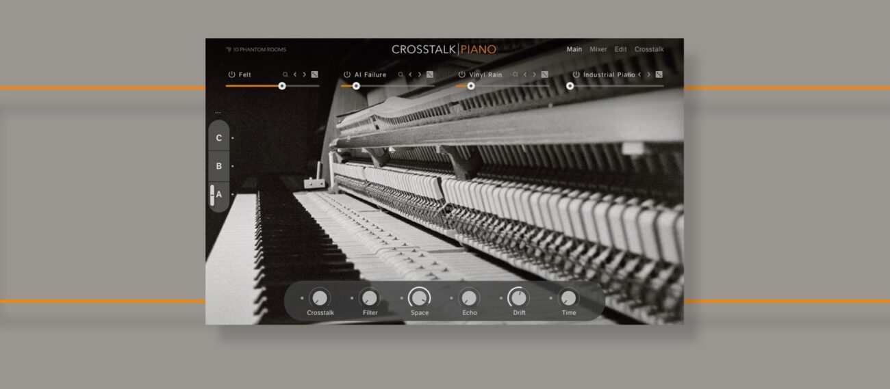 Step into a new era of piano sound design with Crosstalk Piano. This innovative virtual instrument blends the intimate warmth of an upright piano with experimental, processed multisamples to create an entirely new way of playing the piano. By layering traditional and deconstructed sounds, Crosstalk Piano brings an evolving, organic character that feels alive in every note.