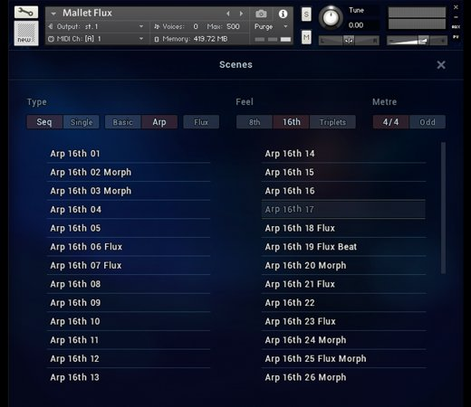 Unlike traditional mallet libraries, Mallet Flux is more than just beautifully sampled percussion. Its Flux Engine introduces pattern automation, step sequencing, and real-time modulation to transform simple chords into complex rhythmic textures. With 270 preset scenes, users can quickly generate dynamic and customizable melodic percussion arrangements—perfect for cinematic scores, TV soundtracks, trailers, commercials, and electronic productions.