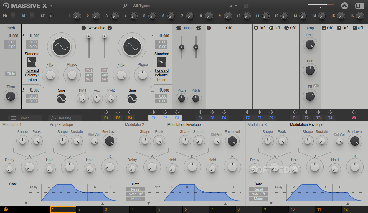 Combines wavetable synthesis with analog warmth for massive sound production.Three Wave Oscillators: