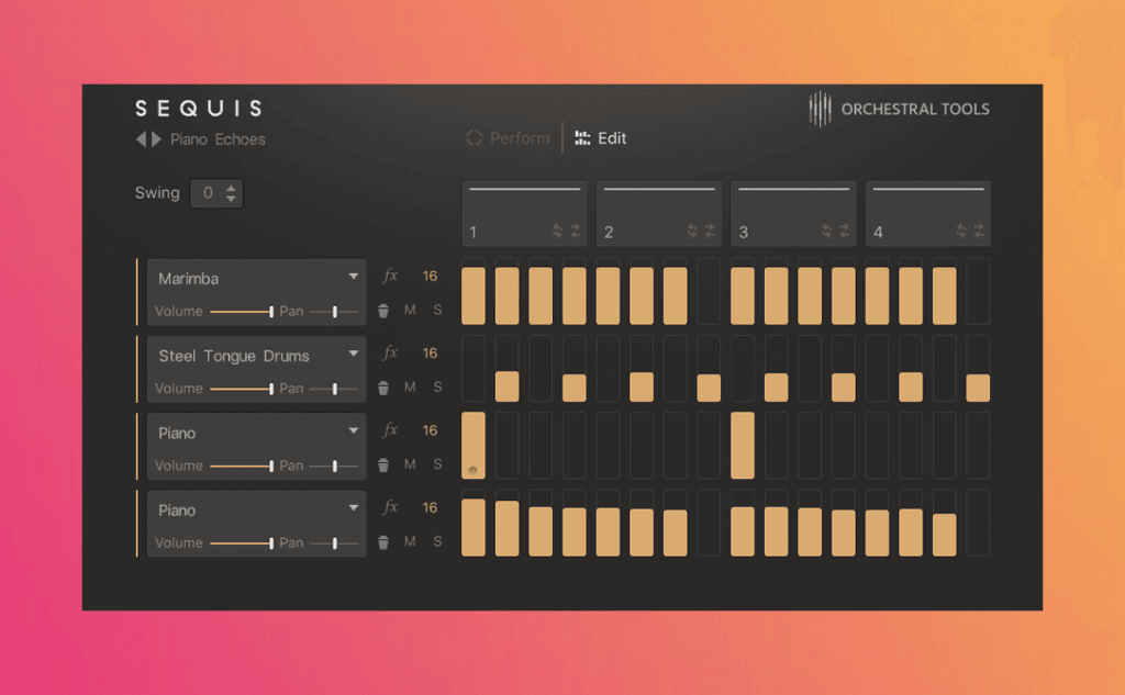 - A step sequencer that easily shapes rhythmic and melodic patterns for evolving textures