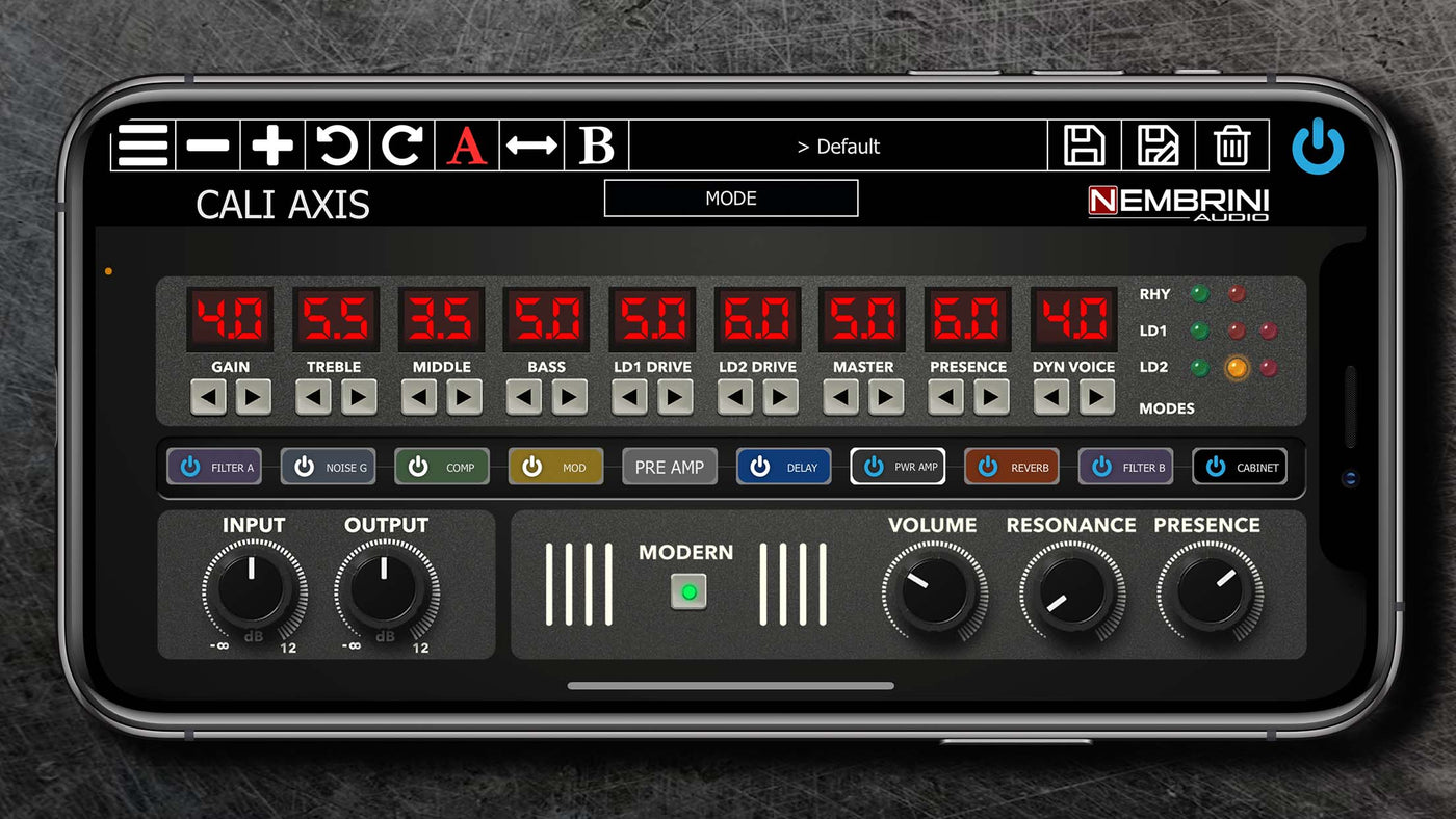 Whether you’re recording, mixing, or performing, Nembrini Audio Cali Axis brings a powerful and responsive guitar amplifier experience with an intuitive interface and a wide variety of tonal options.