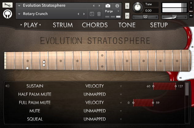 One of the standout features of Evolution Stratosphere is its intuitive strumming pattern editor. Unlike traditional step sequencers, this editor allows you to have full control over the direction, speed, and string selection of your strums. You can even combine multiple articulations within a single strum pattern and incorporate special effects like string slaps, giving you the flexibility to create dynamic, life-like guitar parts.