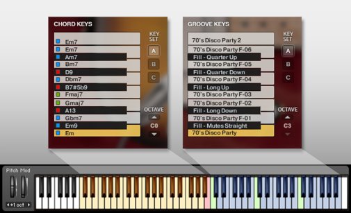 - Left Hand Chord Control: Use your left hand to select authentic funk chords. Play progressions just by hitting the white keys.
