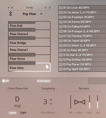 The Animator feature brings your ideas to life by providing over 400 flexible piano phrases that automatically follow your harmonies. You can modify the complexity and dynamics of the phrases using the pitch bend and modulation wheels, making it easier to jam and develop musical ideas quickly.