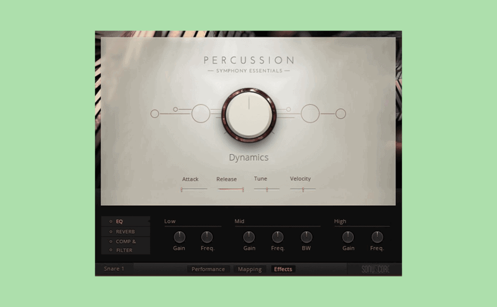 - Classic and exotic percussive instruments for a diverse range of sounds.