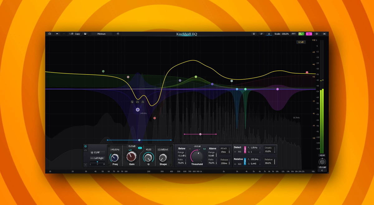 Designed for high-performance, Kirchhoff-EQ offers psychoacoustic adaptive filter topologies, ensuring optimal sound across all frequencies. It introduces switchable ultra-high 117-bit processing, allowing users to toggle between 64-bit and 117-bit modes for pristine detail. Whether you're sculpting frequencies or shaping dynamics, the flexible dynamic EQ functions offer limitless possibilities, including harmonic-shifted envelope detection and two-way threshold controls.