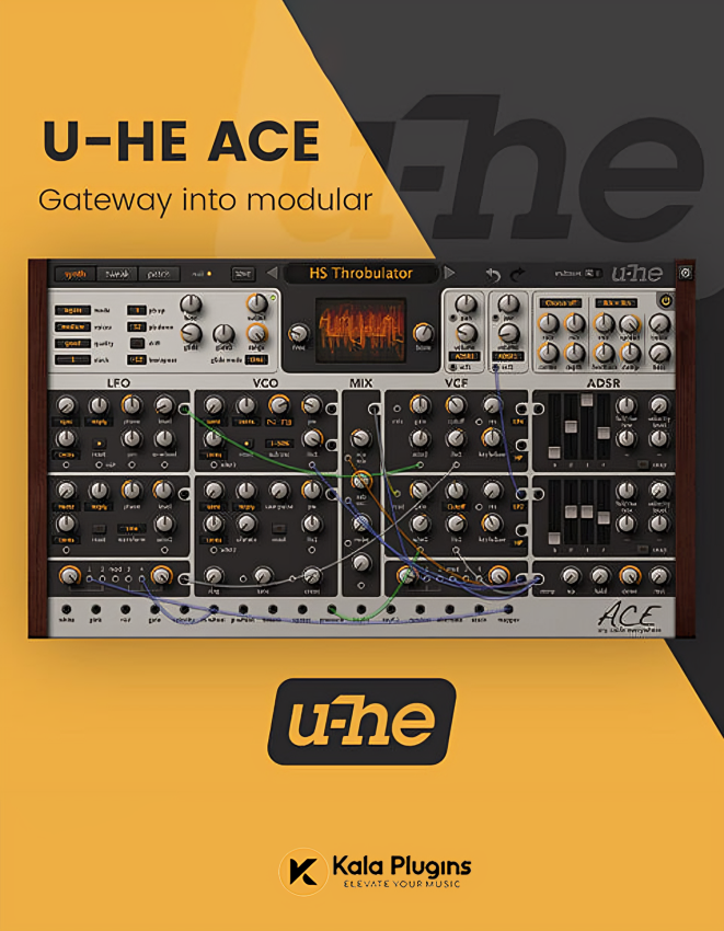 The U-he ACE (Any Cable Everywhere) Modular Synth plug-in delivers rich analog-modeled sound with semi-modular flexibility, perfect for crafting deep basses, soaring leads, and evolving soundscapes. Featuring 25 modulation sources, 30+ destinations, self-oscillating filters, and audio-rate LFOs, ACE lets you experiment with FM, sync, cross-modulation, and unison detune for massive, dynamic tones. Easy to use yet endlessly powerful, ACE is a must-have for synth lovers and sound designers. Available for Mac & Windows with VST, AU, AAX, and Standalone support.
