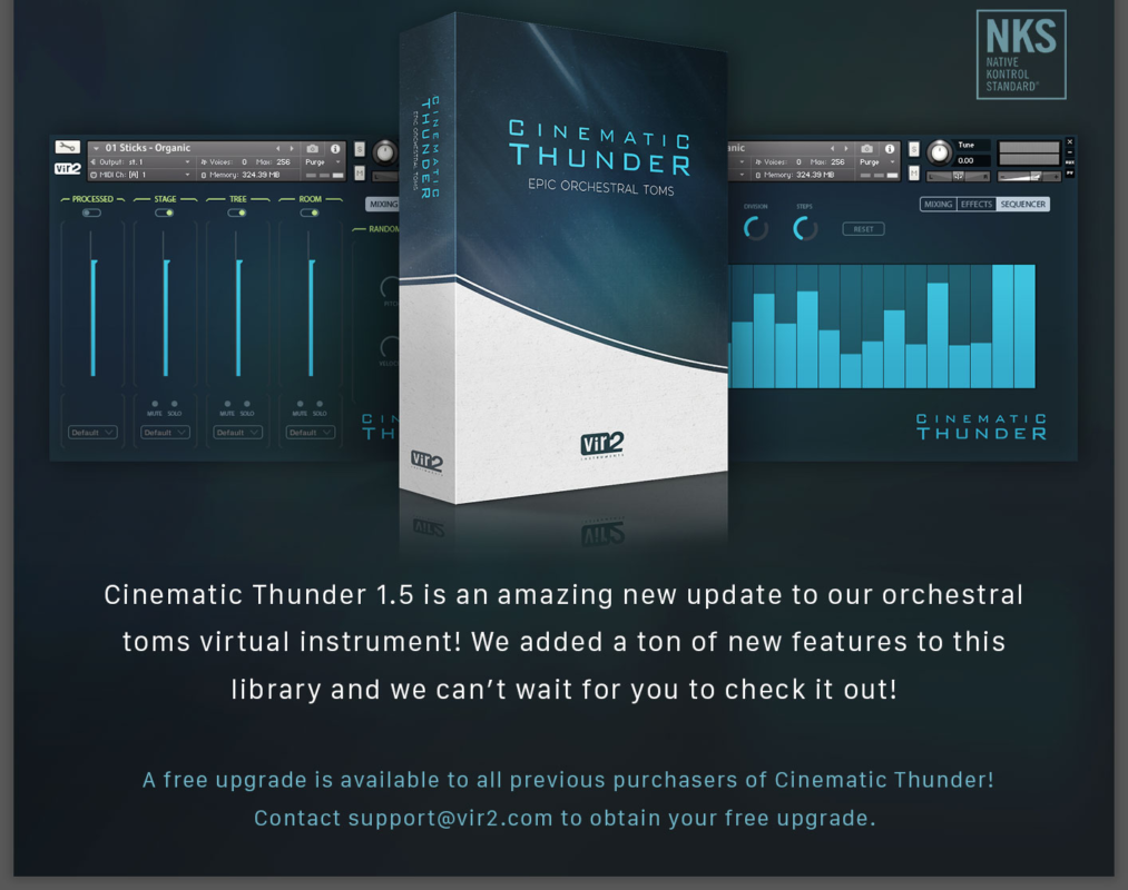Newly updated with a completely redesigned GUI, denoised and recut samples, and an all-new sequencer for pattern creation, Cinematic Thunder gives composers and producers an easy-to-use, expressive percussion tool for crafting blockbuster-worthy soundscapes.
